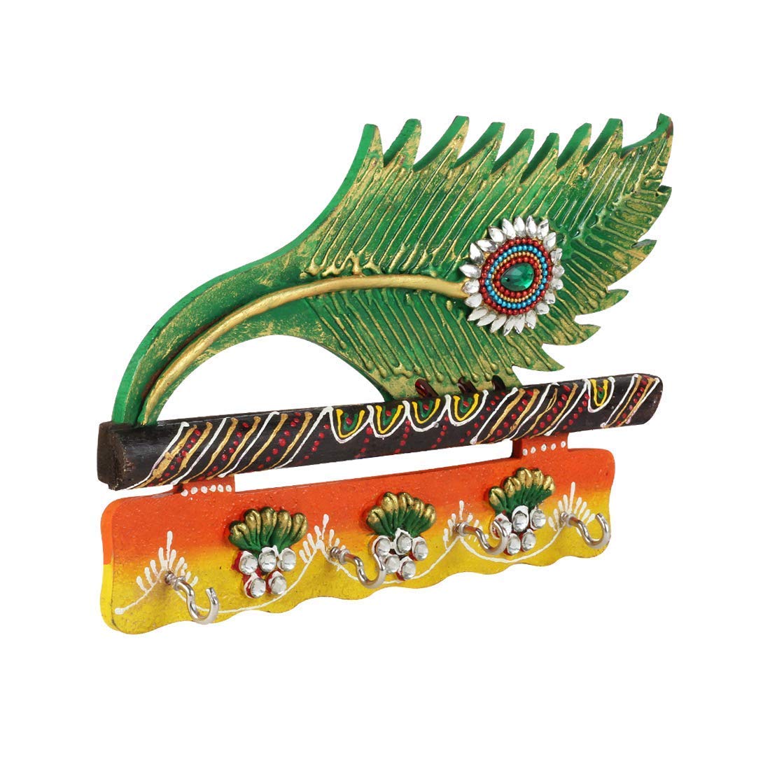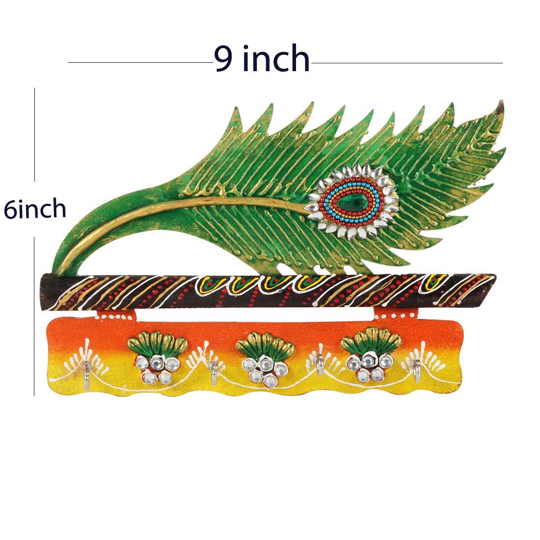 The traditional key holder is made from good quality wood and crafted with a beautiful morpankh design using multicolored which gives it a satisfactory look. The wooden keychain holder can be hung at any place in your house, the keys are secured and the same can be used as a wall decoration as well.